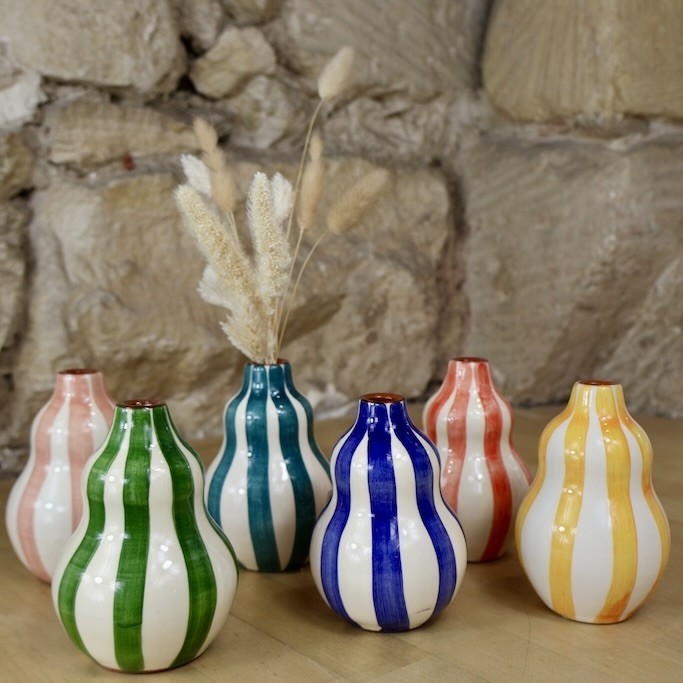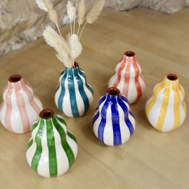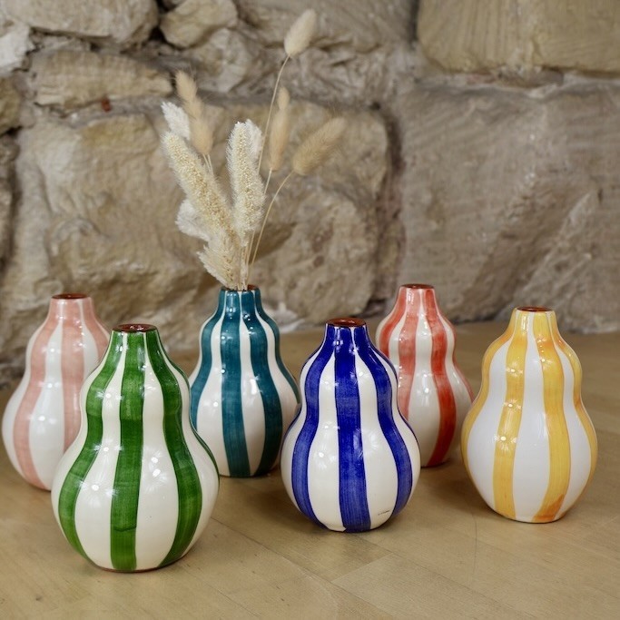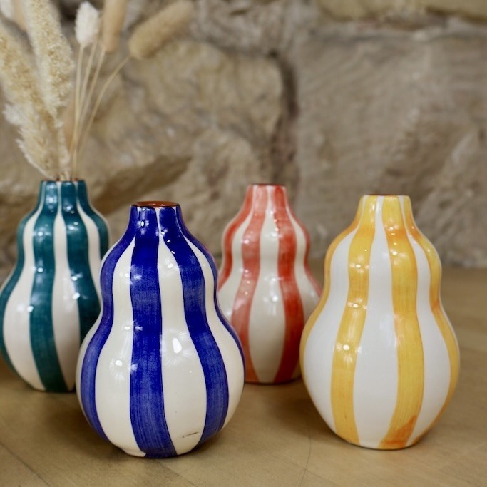 Petit Vase Gourde trait Casa Cubista en terre cuite fabriqué et peint à la main au Portugal par des artisans potiers.