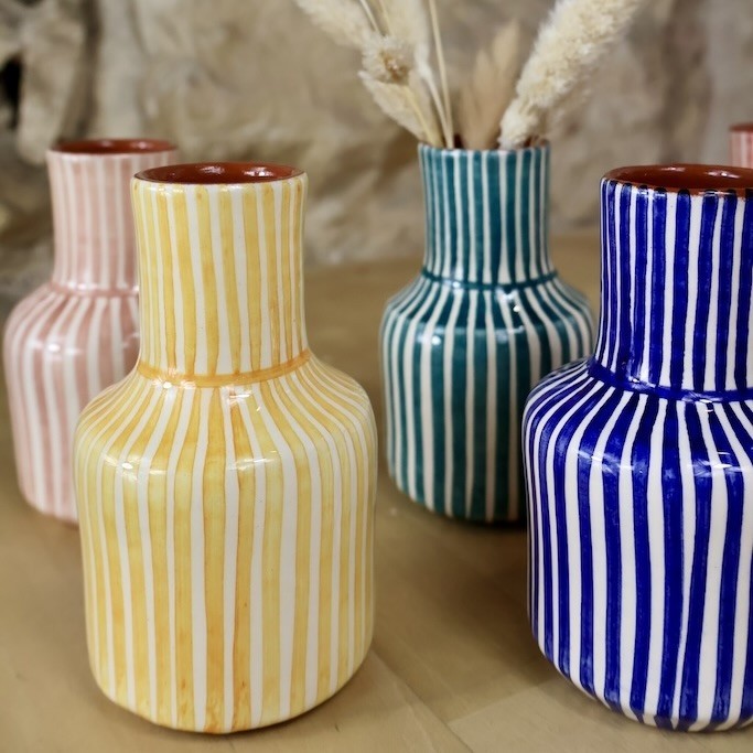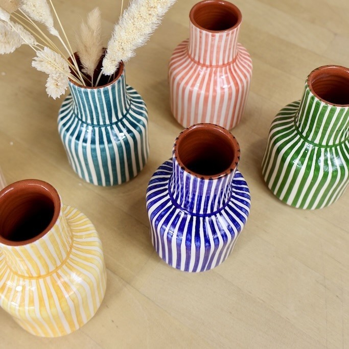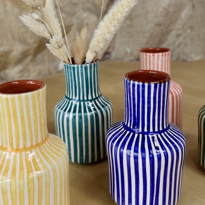 Petit Vase Carafe trait Casa Cubista en terre cuite fabriqué et peint à la main au Portugal par des artisans potiers.