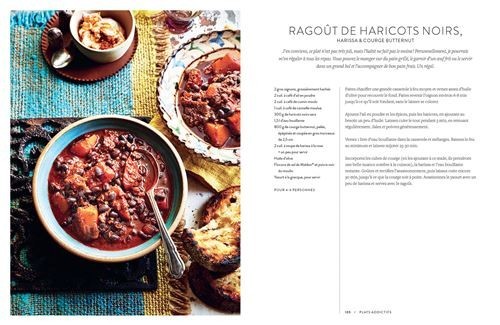Sabrina Ghayour régale vos papilles  avec des recettes végétariennes inspirées par les odeurs, les couleurs et les saveurs des marchés traditionnels  du Moyen-Orient :  Keftas de pois chiches & légumes,  Pastilla aux légumes rôtis, Naan aux dattes, Fleurs d’échalotes crème fraîche au paprika, Pavlova à la cannelle,  Mini-baklavas à la courge…