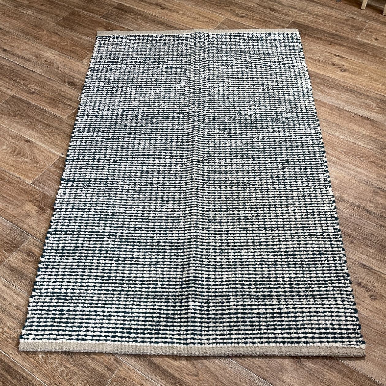 Le Petit Tapis Pipoca (100 x 150 cm), simple et élégant, est fabriqué avec du coton recyclé au Portugal par des artisans tisserands.