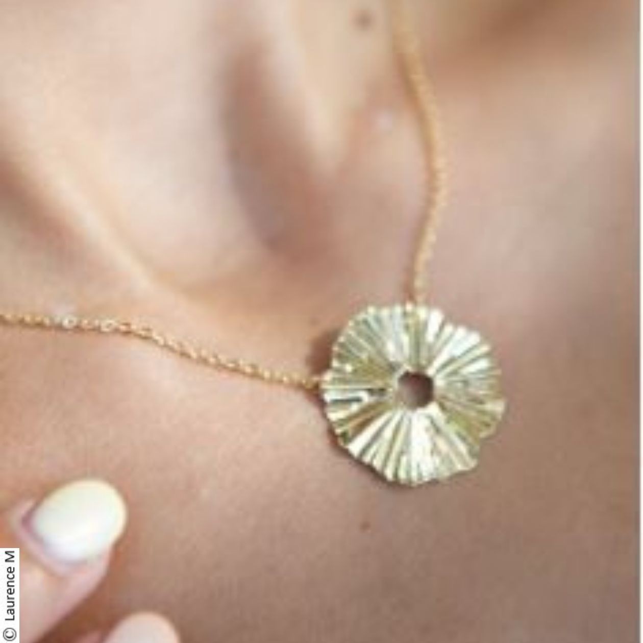 Ce collier inspirée de la fleur d’hibiscus, sublimera vos looks de cet été sous les rayons du soleil.