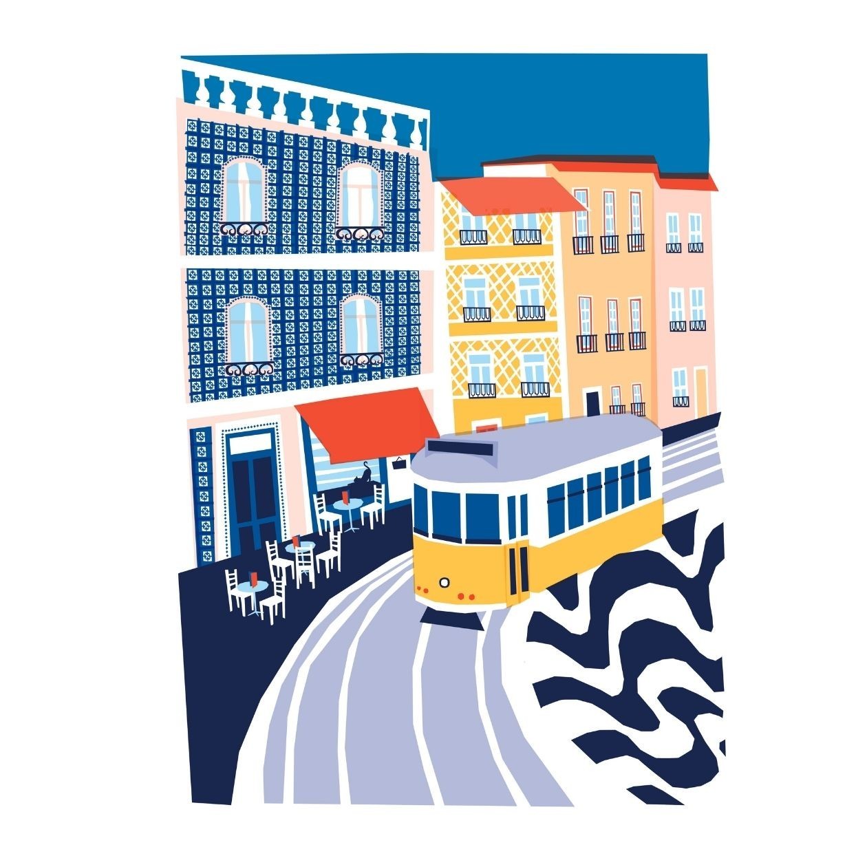 On retrouve ici les symboles de Lisbonne, des azulejos sur les façades aux pavés de la calçada sans oublier le fameux O Elétrico faisant reference au tram 28 qui parcours les quartiers touristique de la ville.