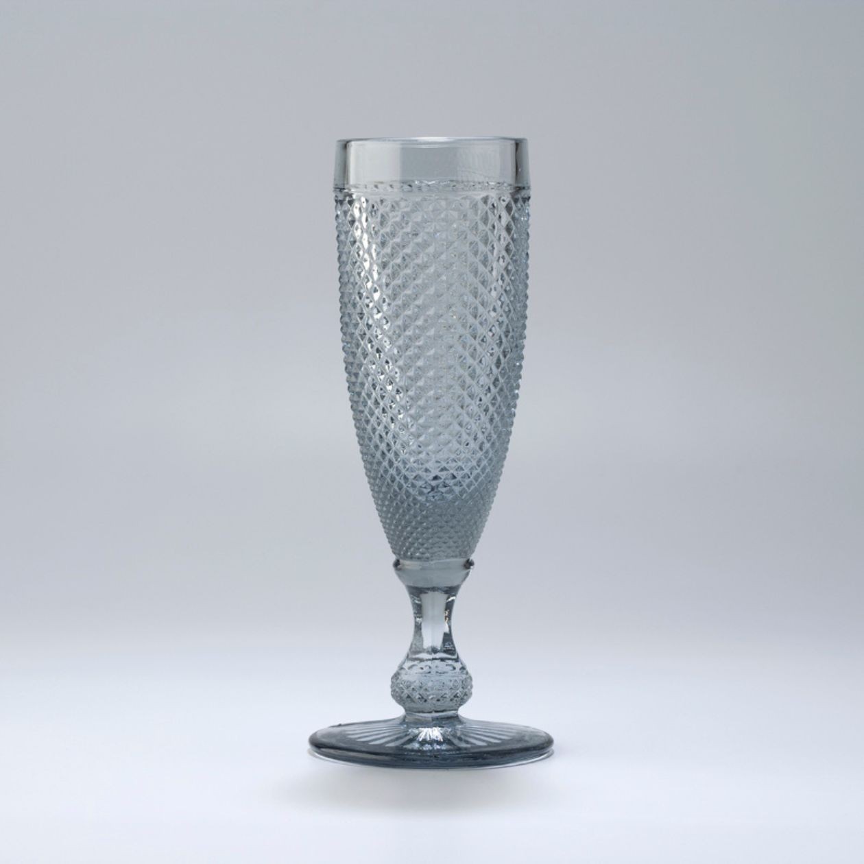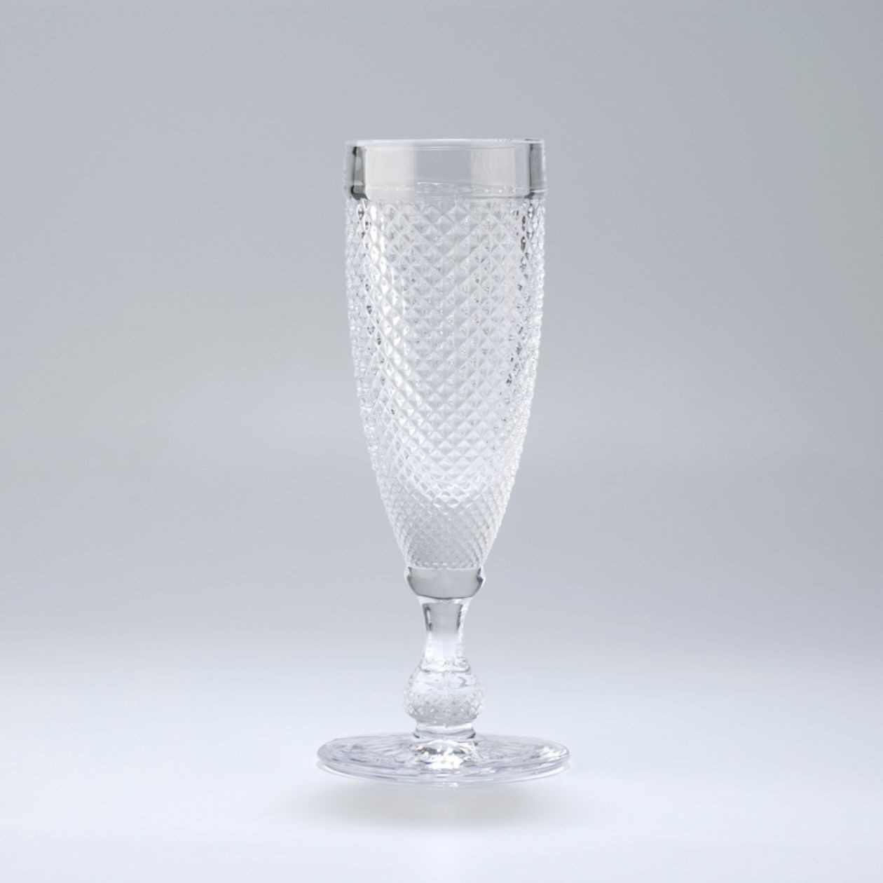 Flûte en verre soufflé qui respecte la technique millénaire du verre soufflé et donne corps à une pièce singulière.
