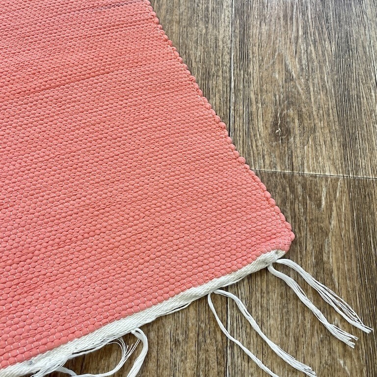 Ces tapis sont réalisés à partir de lirettes de coton – de fines bandes de tissu issues des surplus de l’industrie textile – soigneusement assemblées pour créer un motif unique à chaque pièce. Chaque Tapis Trapos est donc une pièce originale, avec des variations de couleurs qui reflètent à la fois la créativité et les ressources disponibles à l’atelier.