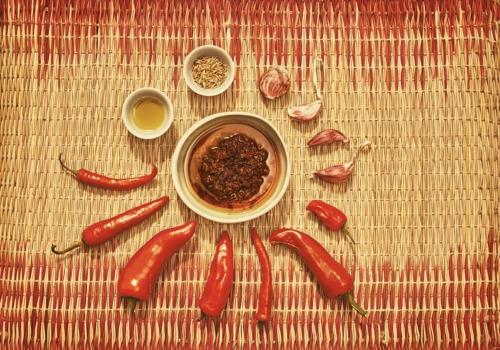 Ingrédients : piment séché, ail, coriandre, carvi, menthe, sel