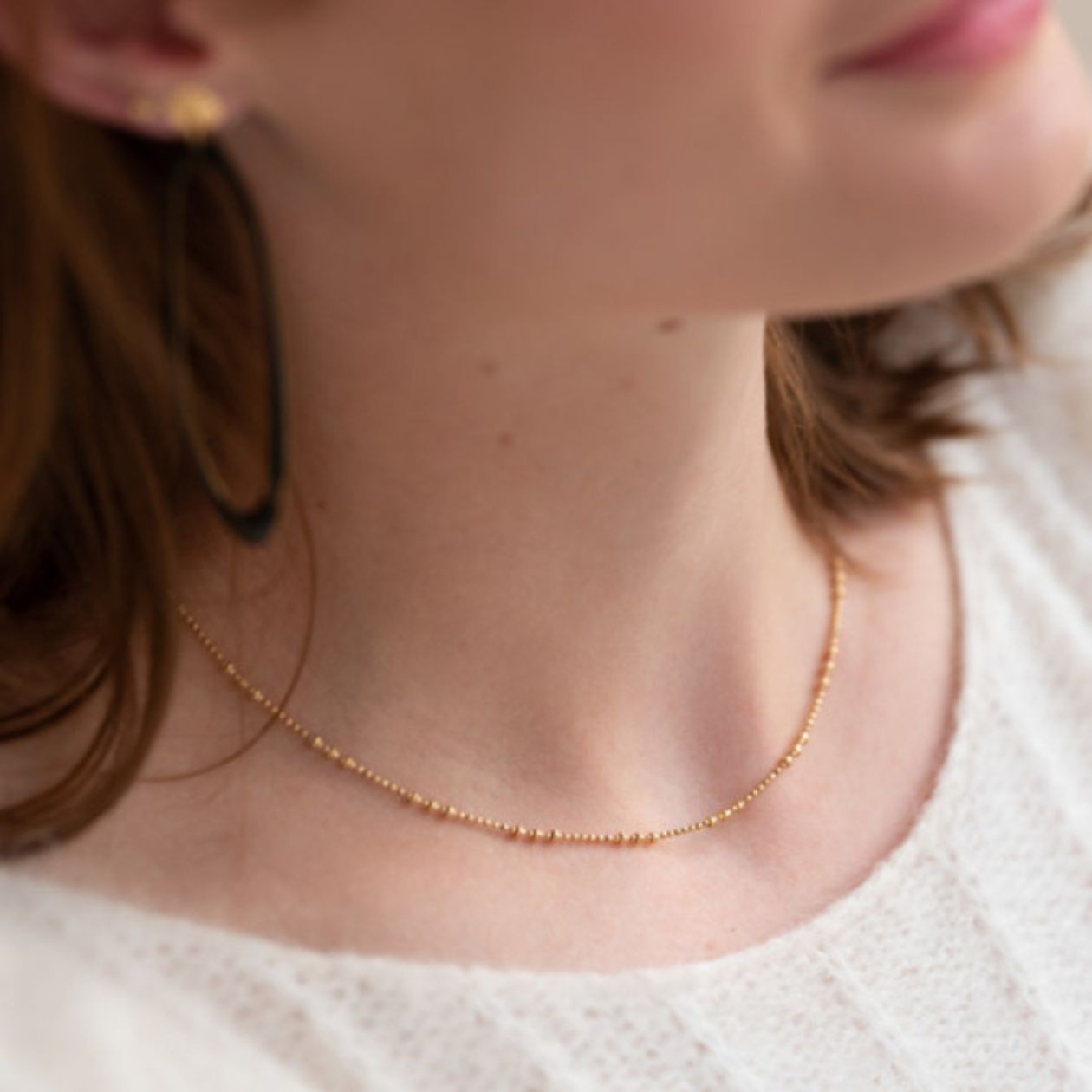 Petite chaine dorée de 40 cm avec des petites perles facetté à porter seule ou en accumulation.