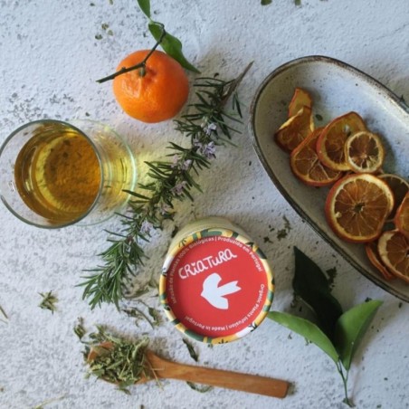 L'infusion Criatura est réalisée à partir de morceaux de zeste de mandarine soigneusement sélectionnés et combinés avec la saveur parfumée du romarin et de la verveine citronnée fraîche.