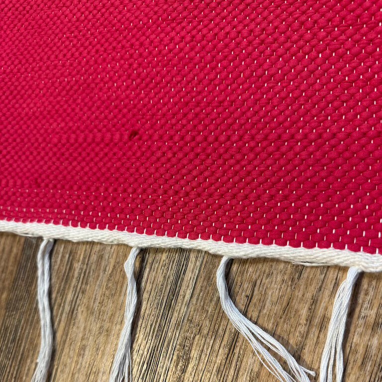 Ces tapis sont réalisés à partir de lirettes de coton – de fines bandes de tissu issues des surplus de l’industrie textile – soigneusement assemblées pour créer un motif unique à chaque pièce. Chaque Tapis Trapos est donc une pièce originale, avec des variations de couleurs qui reflètent à la fois la créativité et les ressources disponibles à l’atelier.