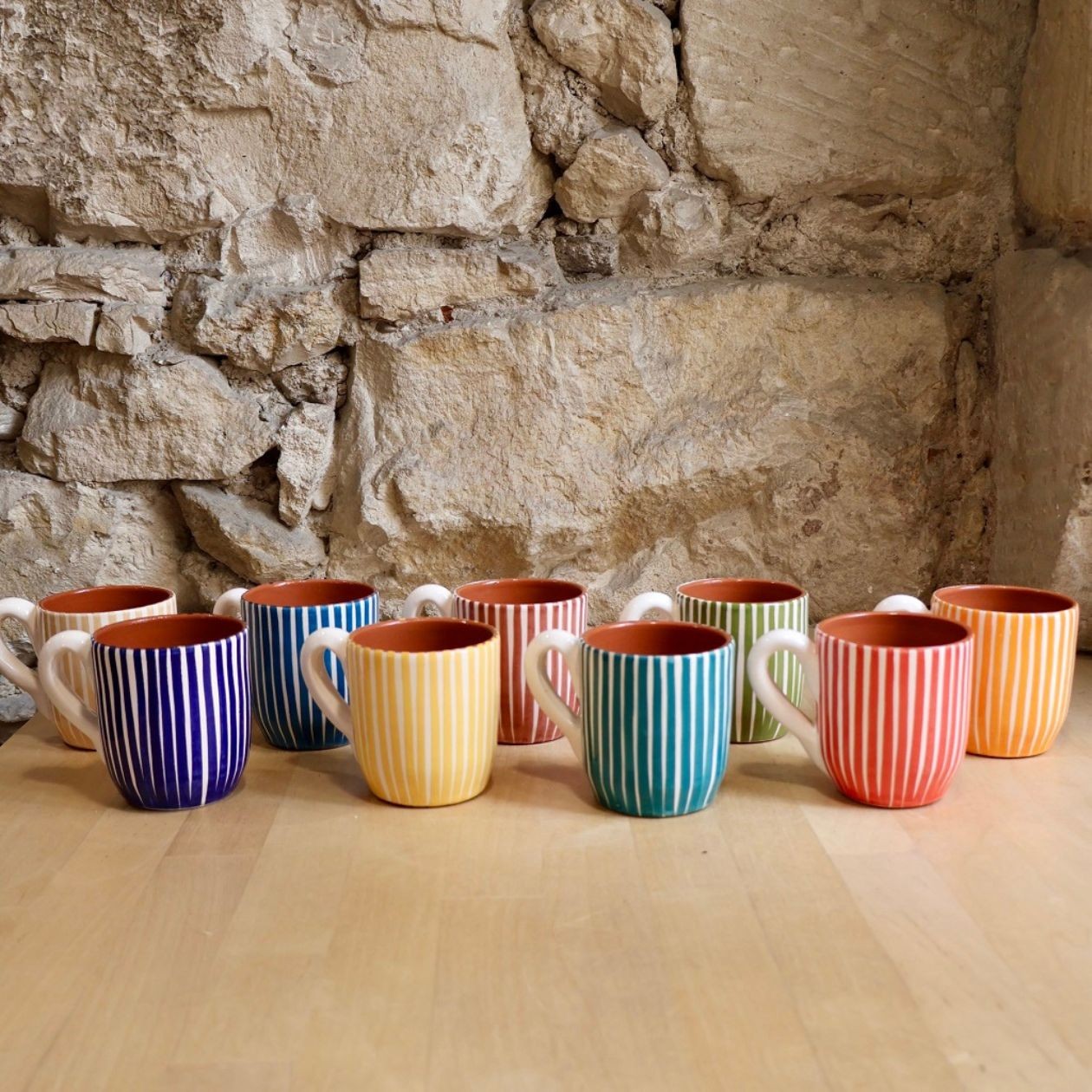 La fabrication des Petit mug arrondi listas A loja da Cerâmica est artisanale et sont réalisées en petite série.