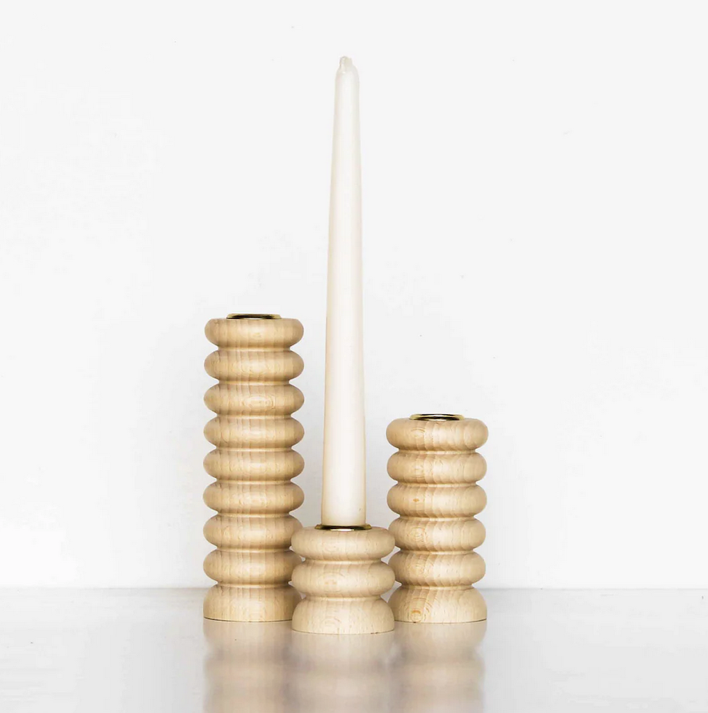 Bougeoir en bois de hêtre massif, fabriqué à la main au Portugal par un processus traditionnel de tournage du bois.