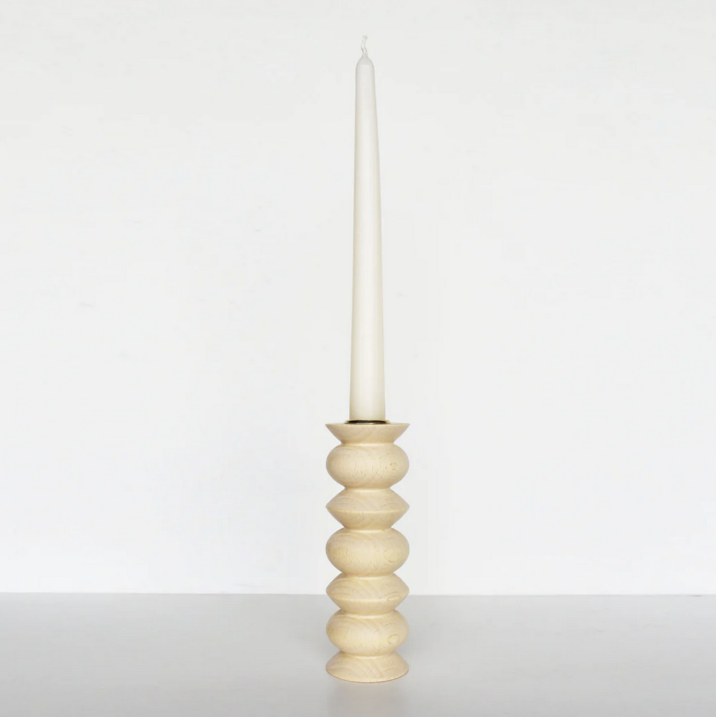 Bougeoir en bois de hêtre massif, fabriqué à la main au Portugal par un processus traditionnel de tournage du bois.