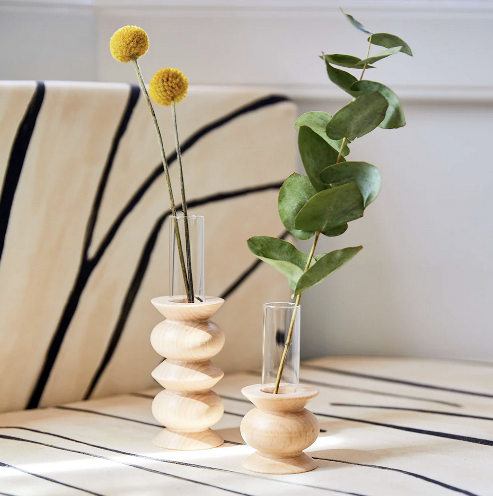 Soliflore en bois de hêtre massif, fabriqué à la main au Portugal par un processus traditionnel de tournage du bois.