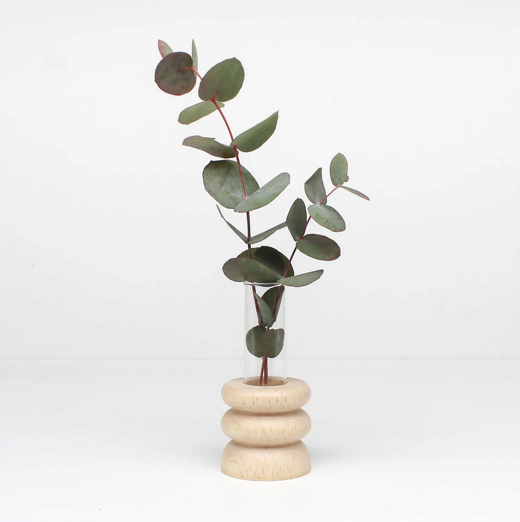 Soliflore en bois de hêtre massif, fabriqué à la main au Portugal par un processus traditionnel de tournage du bois.