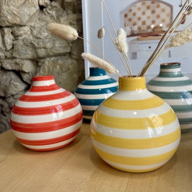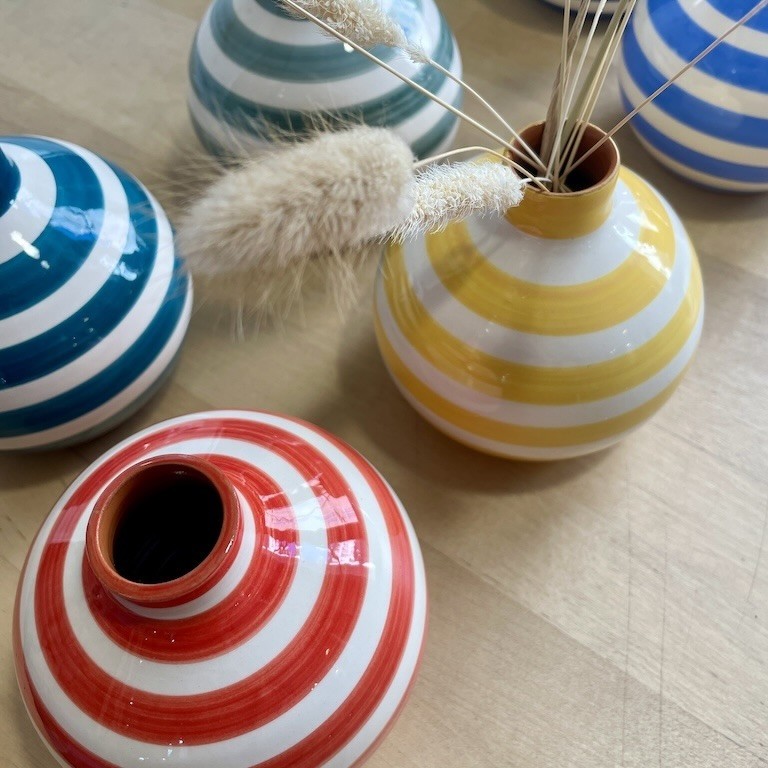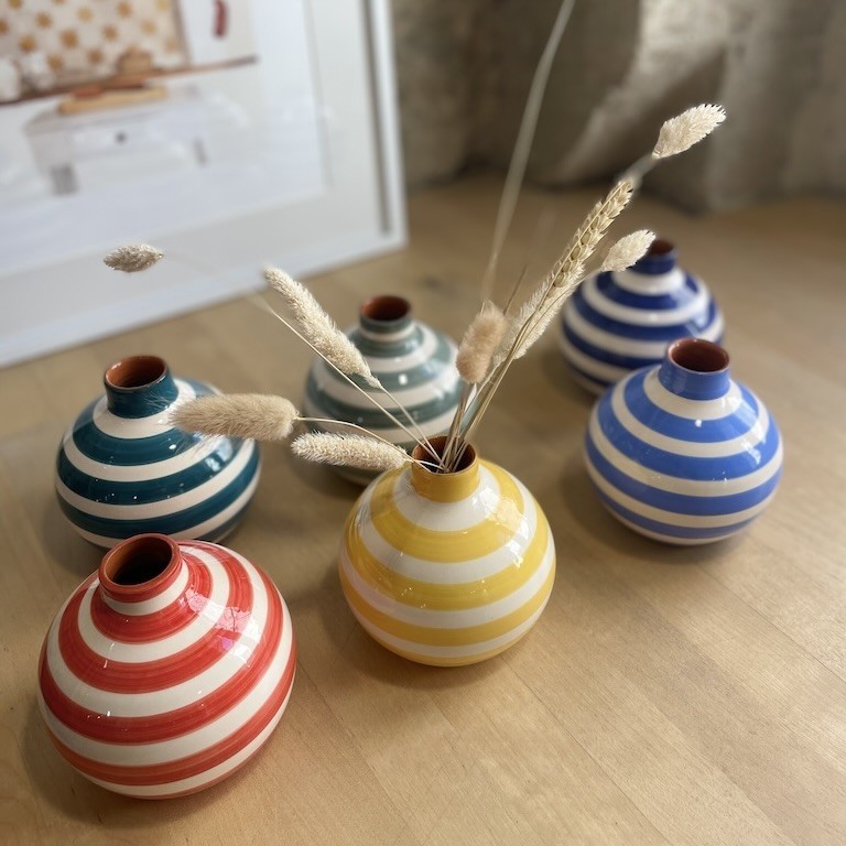 Mini vase bola lignes épaisses est disponible dans plusieurs coloris, vous pouvez aussi optez pour un mélange de différents motifs parmi nos vases.