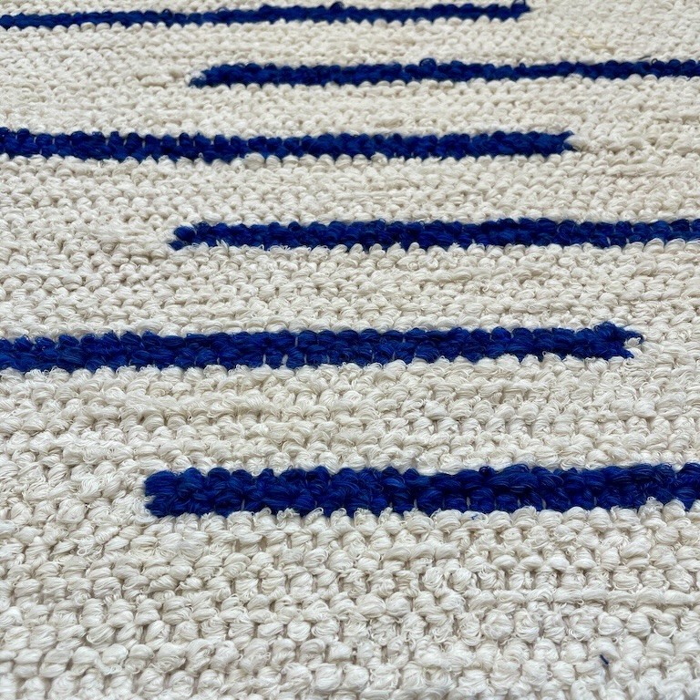 Les matières premières utilisées dans le tapis Lignes sont issues du recyclage de l’industrie textile. Cette matière de qualité, souvent neuve, est utilisé pour la fabrication artisanale des tapis Puro Cru.