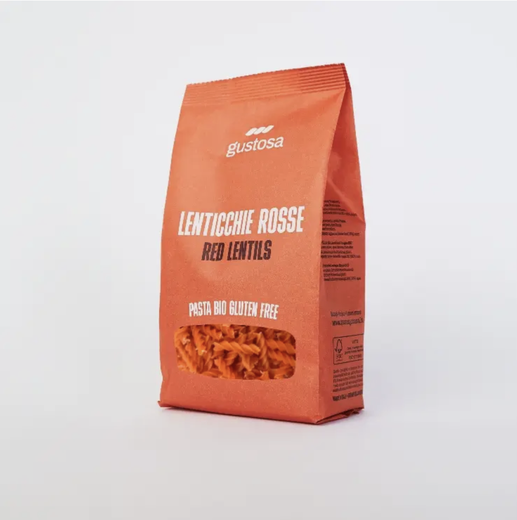 Pâtes sans gluten obtenues uniquement à partir de farine de lentilles rouges BIOLOGIQUES & ITALIENNES. Lentilles rouges Sans gluten, bio, vegan, casher... super savoureux !! Nouveau paquet en papier incroyable !
