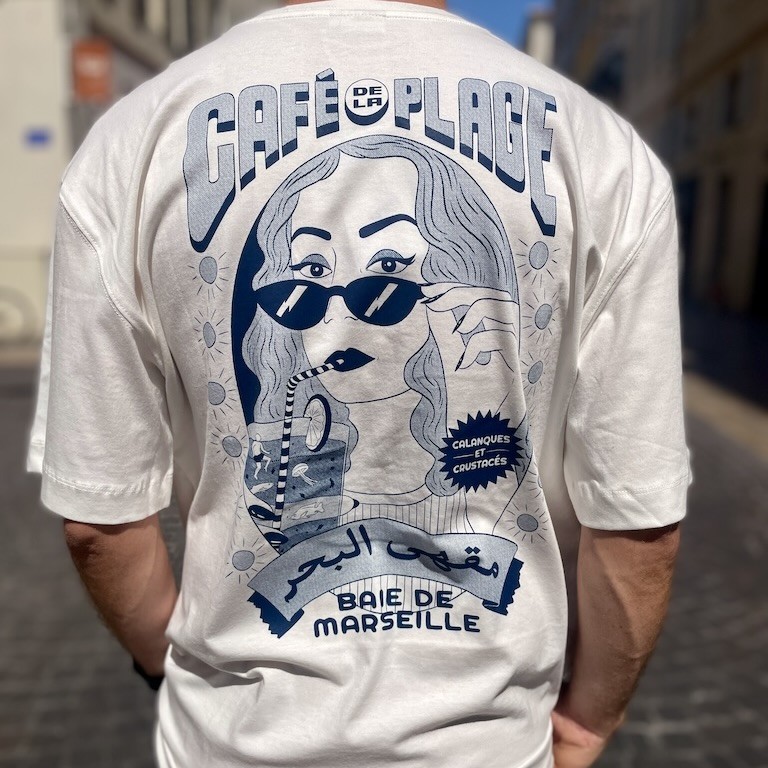 - illustration exclusive 'Café de la Plage Marseille' couleur navy