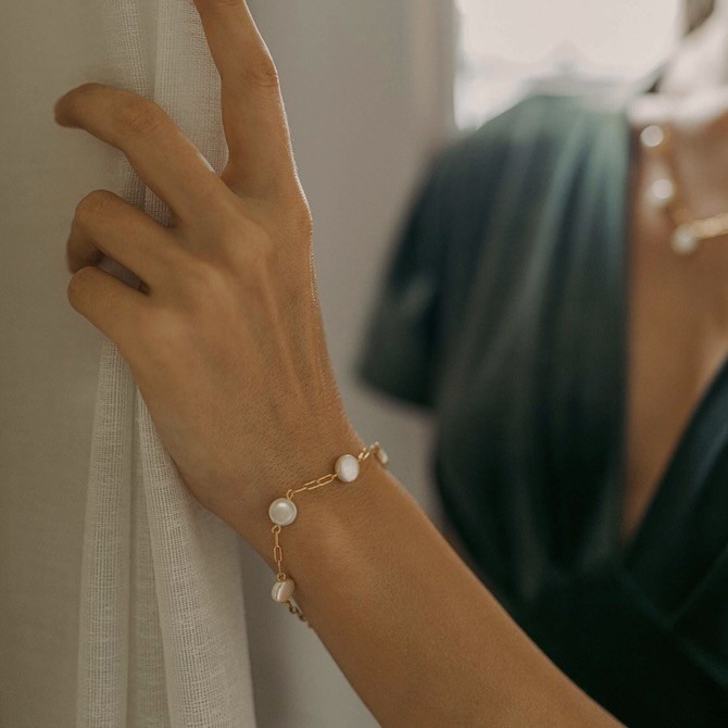Le bracelet ajustable Lively Pearls est une véritable réflexion de la beauté intemporelle. Doté d'une chaîne premium plaquée or 24K et de délicates perles de nacre, cette pièce est méticuleusement fabriquée à la main au Portugal.