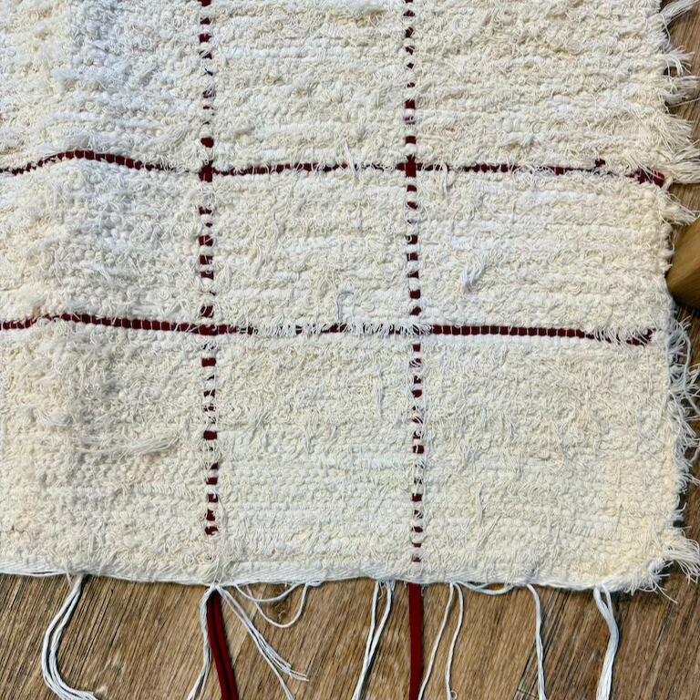 Tapis fait sur des métiers à tisser manuels à partir de chutes de tissus recyclés de fabriques de textile portugaises.