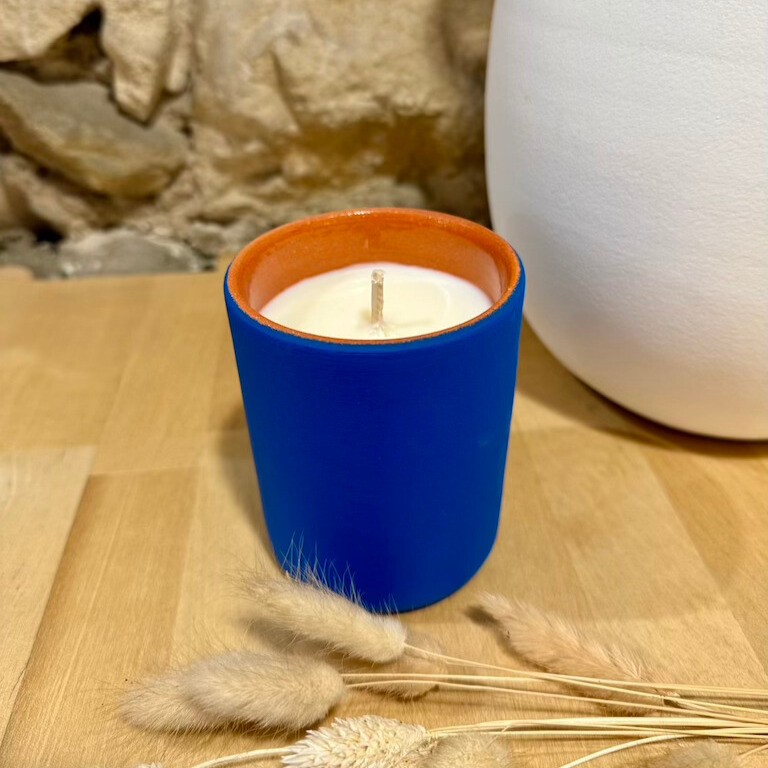 La réunion d'un artisan potier pour le contenant en terre cuite aux couleurs mattes, et d'un artisan créateur cirier marseillais en exclusivité chez AZUL.